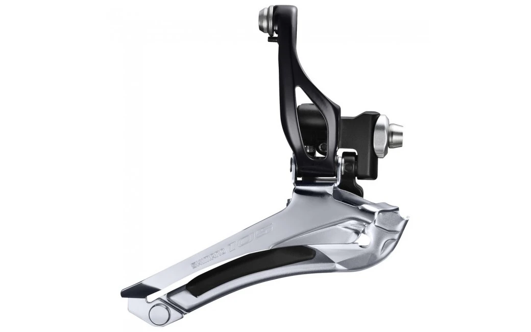 Dérailleur avant Shimano 105 pour vélo de route. Il s’agit ici du modèle avec fixation à braser sur le cadre. Le dérailleur est compatible avec les transmissions double plateaux et les dérailleurs arrières 11 vitesses.