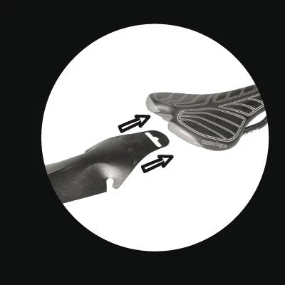 Ce garde boue arrière en plastique noir, vous protège efficacement des éclaboussures. Les dimensions de la lame sont de 34 x 10 cm. Léger, il pèse seulement 15 grammes. Ce garde boue se fixe simplement sous votre selle : ses deux encoches sur les côtés viennent se clipser sur les rails de la selle.