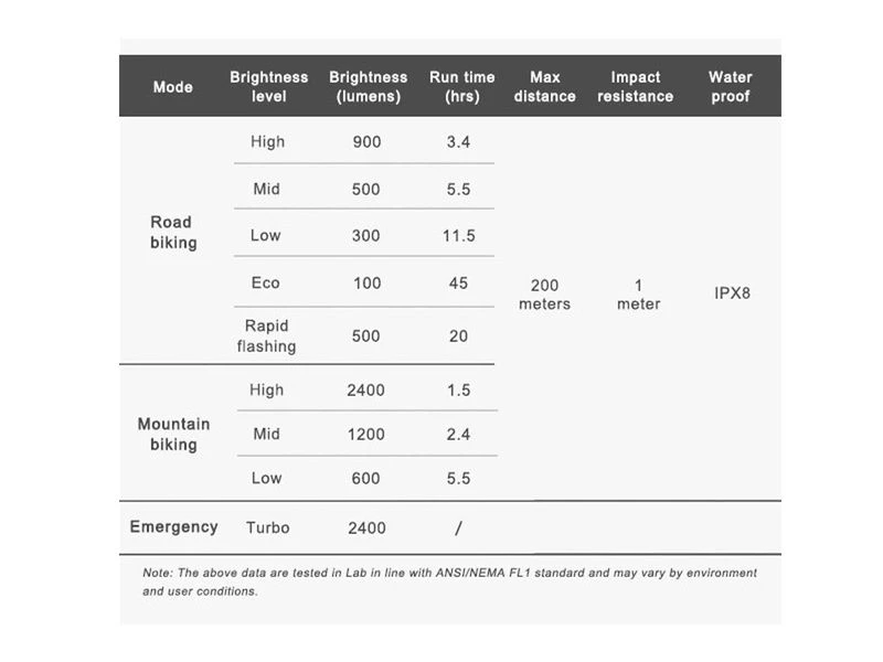 Affiche clairement et instantanément l’autonomie restante pour chaque niveau de luminosité : vous pouvez gérer votre sortie de manière intuitive en sélectionnant le niveau de luminosité idéal pour ne jamais tomber en rade au milieu de nulle part.