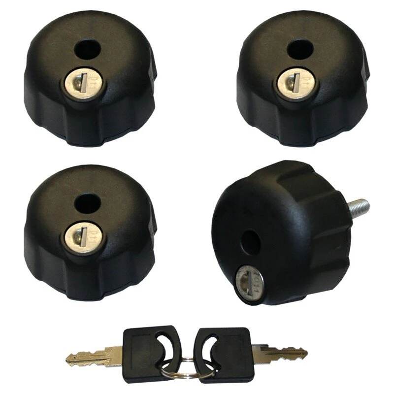 Ce lot contient 4 molettes de verrouillage pour porte-vélos MFT.